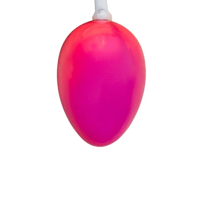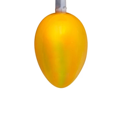 Add some glow to your Easter event with this string of egg-shaped lights. Each light bulb is covered with either a yellow, pink, blue, green or purple decorated egg-shaped cover. The UL listing allows for these to be used both indoor and outdoor. They’re a fun way to decorate any room, window, buffet or Easter party table with color and light. Product Features:Color: clear bulbs / white wireMulti-colored egg-shaped light covers with a pearl finishNumber of bulbs on string: 10Bulb size: miniSpacing between each bulb: 9.5″Lighted length: 7.25′ (approximately)Total length: 10′ (approximately)24″ lead cord5″ tail cordAdditional product features:If one bulb burns out, the rest will stay litContains end-to-end connectors which allows you to connect multiple lighted items together (not to exceed 210 watts)Wire gauge: 22Comes with replacement bulbs and spare fuseUL certified and approved for indoor/outdoor use120 volts, 60 hertz, 0.08 amps, 9.6 wattsLight cover dimensions: 2.5″ high x 1.75″ wideMaterial(s): plastic/wire/glass bulbs
