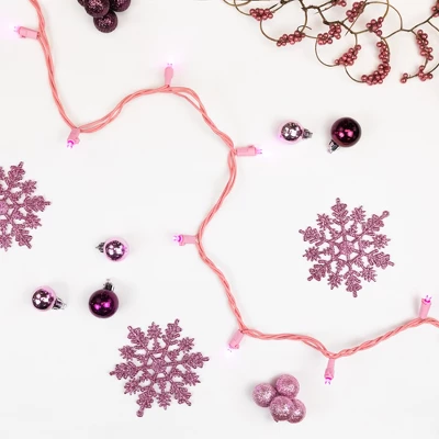 This set of multi colored lights is a great choice to decorate your holiday tree, wreath, or garland. The pink wire design allows you to customize and match your personal style. With their efficient design and durable construction, you can enjoy the beauty of these lights year after year. Use them for your holiday decor, a wedding, or for everyday household use. LED bulbs are cool to the touch and use much less energy than a traditional incandescent bulb.Product Features:Color: pink bulbs / pink wire Number of bulbs on string: 100Bulb size: wide angle Bulb type: LEDSpacing between each bulb: 4″ Lighted length: 33’Total length: 34.25’12” lead cord 3″ tail cord Additional Product Features: Commercial grade lightsLED lights use 90% less energyDurable non-glass replaceable bulbsCool to the touch UL certified and approved for indoor or outdoor useIf one bulb burns out, the rest will stay lit Lights are equipped with Lamp Lock feature, which makes them replaceable, interchangeable and keeps them from falling outComes with replacement bulbs and spare fusesContains end-to-end connectors which allows you to connect multiple sets together (not to exceed 210 watts)Wire gauge: 22 40.8 watts