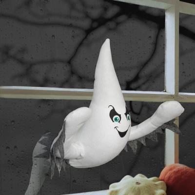 Skeletons, ghosts and ghouls, Oh My! Add this creepy ghost to your decor for a one of a kind statement piece. The body is placed in front of the window, while the tail is placed on the back of the window, lending a 3-D effect, as if it’s coming right through the window! Suction cups hold it securely to any smooth, flat surface. Features:3-D ghoulish ghost Halloween decorationLight weight and easy to install2″ suction cups hold the decoration securely to flat surfacesBendable wire in the armsFor indoor use or outdoor under a covered areaDimensions:Ghost: 12″H x 11″W x 6.5″DTail: 7″H x 8″W x 3″DMaterial(s): cotton/foam/fabric/plastic: