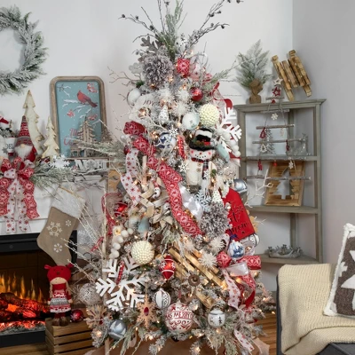 Spruce up your holiday decor this holiday season with this beautiful holiday stocking. The ivory-colored cuff is a perfect complement to the beige colored embroidered snowflakes. This stocking will enhance the look of your country style holiday decor. Be sure this stocking is hung by your chimney with care, in the hopes that Santa will soon be there!Features: Beige and ivory holiday stockingFeatures an Ivory cuff with faux furThere is a beige button in the middle of the snowflakesLoop in the corner for easy hangingRecommended for indoor decorative use onlyHand wash recommendedDimensions: 20.5″H X 2″W X 10″DMaterial(s): polyester/linen