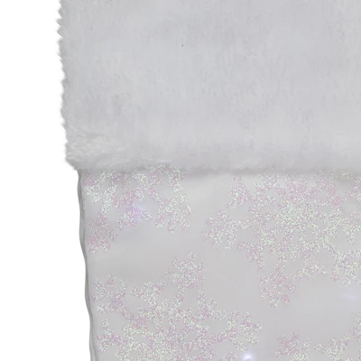 holiday is too sparkly…said no one ever! Blend the look of a traditional holiday with a glitz holiday with this lovely lighted stocking. Pairing a classic faux fur cuff with a glittered snowflake design, this stocking is perfect for your holiday decor this year. Product Features:White LED holiday stockingFeatures clear mesh with iridescent glittered, There is a snowflake design 10 pure white LED lightsWhite faux fur cuff and satin-like backingOne-sided designEach comes ready-to-hang on a white loopRequires 2 “CR3032” batteries – not included Recommended for indoor use only Dimensions: 10.5″W x 22.25″H Material(s): polyester