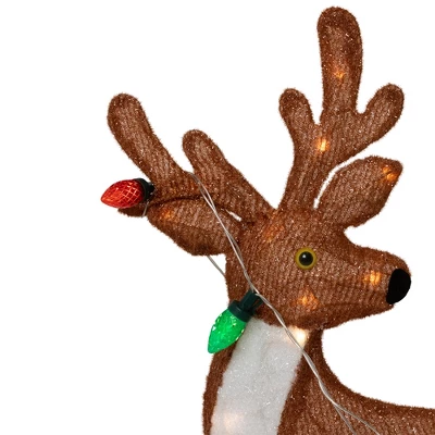 This cheerful 3D snowman is accompanied by his deer and penguin friends. It just might be the only decoration you need for your holiday display. Dressed in hats and scarves the snowman and penguin are winter-ready. Designed with 2D features, the deer and penguin hold a string of multi-color holiday lights. This festive piece is designed with warm white LED lights and will be the focal point of your yard. Quick and easy installation lets you light up your outdoors in minutes. Product features:Outdoor holiday decorationWinter-dressed snowman, penguin, and deer designPre-lit with 140 warm white lights Bulb size: miniBulb type: LED10′ clear lead cordAdditional product features:UL indoor and outdoor adaptor includedContains 1 plug with an end connector which allows you to stack multiple lighted items together (210-watt max)Comes with replacement bulbs and spare fusesSome assembly required; ground stakes includedUL approved and certified for indoor or outdoor useRecommended for outdoor use120V, 60Hz, 0.20ADimensions: 48″H x 40″W x 12″DMaterial(s): metal/fabric/plastic