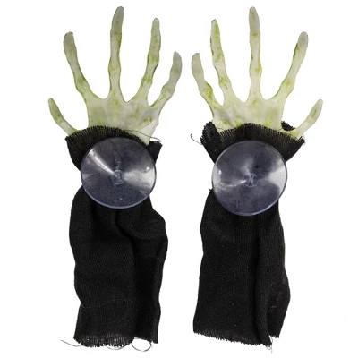 Skeletons, ghosts and ghouls, Oh My! Add this ghastly gourd to your decor for a one of a kind statement piece. The hooded head and spooky hands lend a 3-D effect, as if it’s coming right through the window! Suction cups hold it securely to any smooth, flat surface. Features:Jack-o-lantern and hands Halloween decorationLight weight and easy to install2″ suction cups hold the decoration securely to flat surfacesRecommended for indoor useDimensions: 5″H x 6″W x 3.5″DTattered fabric: 20″ longMaterial(s): foam/plastic/fabric