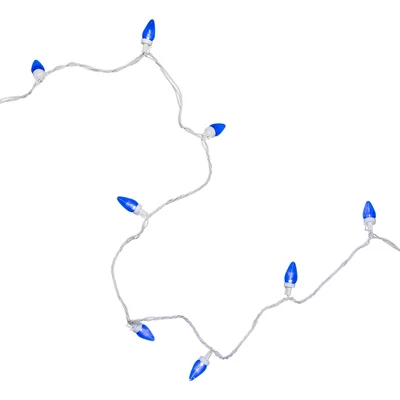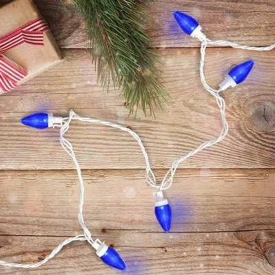 Add a touch of festive cheer to your holiday season with our vibrant blue LED C7 holiday lights. Designed for durability and energy efficiency, these lights provide a stunning glow that enhances any indoor or outdoor space. Perfect for outlining your roofline, decorating trees, or creating a cozy atmosphere, their classic C7 shape offers a nostalgic charm. Enjoy the brilliance of blue illumination, perfect for winter wonderlands or holiday celebrations, and make your home sparkle with holiday spirit!Product Features:Color: blue bulbs / white wireNumber of bulbs on string: 25Bulb size: C7Bulb type: LEDSpacing between each bulb: 8″Lighted length: 16’Total length: 17’6″ lead cord 6″ tail cordAdditional Product Features:LED lights use 90% less energyDurable non-glass replaceable bulbsCool to the touchEach socket has a clip on it for securing to trees or other surfacesUL certified and approved for indoor or outdoor useIf one bulb burns out, the rest will stay litComes with replacement bulbs and spare fuseContains end-to-end connectors which allows you to connect multiple sets together (not to exceed 210 watts)Wire gauge: 22120 volts, 60 hertz, 0.02 amps, 2.4 watts