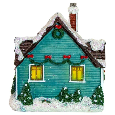 This sweet little cottage house is the perfect addition to your holiday village display. Illuminated with an LED warm white bulb, if offers the perfect, soft glow. Iridescent glitter flakes add an icy snow effect. Battery operated means it can be placed anywhere.Product Features:Battery Operated snowy holiday village housePre-lit with 1 LED warm white bulbEmbellished with large glitter flakesRequires 2 AAA batteries – not includedTimer functionConvenient on/off switch on the bottomFor indoor use onlyDimensions: 5.5″H X 4.75″W X 4″DMaterial(s): polyresin
