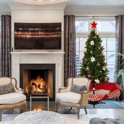 - Ball Ornaments; Flower Accents And Star Tree Topper Included