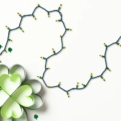 Brighten your holiday season with a 100-count mini holiday light set featuring clear bulbs and green tips. These versatile lights add a festive touch to your holiday tree, wreaths, and garlands, and their green accents make them a great choice for St. Patrick’s Day decorations as well. Perfect for both indoor and outdoor use, this set brings warmth and charm to any occasion.Product Features:Color: clear bulbs with green tips / green wireNumber of bulbs on string: 100Bulb size: miniBulb type: incandescentSpacing between each bulb: 2.5″Lighted length: 20.25’Total length: 21.5’12” lead cord3″ tail cordAdditional Product Features:UL certified and approved for indoor or outdoor useIf one bulb burns out, the rest will stay litLights are equipped with Lamp Lock feature, which makes them replaceable, interchangeable and keeps them from falling outComes with replacement bulbs, flasher bulbs and spare fusesContains end-to-end connectors which allow you to connect multiple sets together (not to exceed 210 watts)Wire gauge: 22120 volts, 60 hertz, .34 amps, 40.8 watts