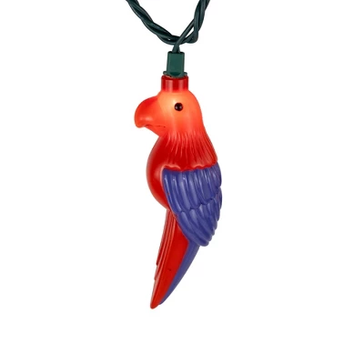 Bring a tropical paradise to your outdoor space with our patio light set featuring charming parrot designs. Illuminate your evenings with a playful touch as these vibrant parrot lights add a burst of color and whimsy to your patio, deck, or garden. Whether you’re hosting a summer soiree or simply relaxing under the stars, these delightful lights create a festive atmosphere that will enchant guests and uplift your outdoor decor. Brighten up your outdoor gatherings and let these charming parrot lights transport you to a tropical getaway right in your own backyard.Product Features:Bulb color: clear bulbs / green wireBulb size: miniNumber of bulbs on string: 10Spacing between each bulb: 8″Lighted length: 6’Total length: 8.5’6″ tail cord24″ lead cordAdditional Product Features:If one bulb burns out, the rest will stay litContains end-to-end connectors which allows you to connect multiple sets of lights together (not to exceed 210 watts)UL certified and approved for indoor or outdoor useComes with replacement bulbs and spare fuseWire gauge: 22120 volts, 60 hertz, .06 amps, 7.2 watts
