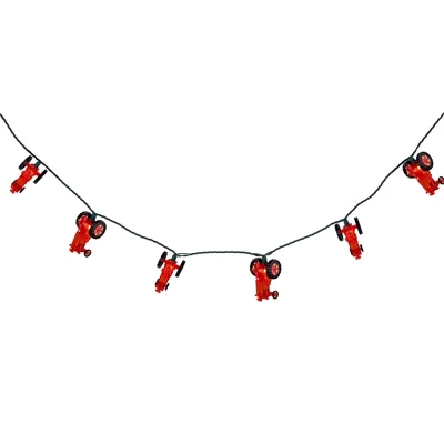 Create a cozy atmosphere on your patio with our charming red tractor patio light set. Perfect for adding a touch of rustic charm to outdoor gatherings, these lights feature adorable red tractor designs that evoke a sense of farmhouse nostalgia. Illuminate your evenings with warmth and style, whether you’re hosting a summer barbecue or simply enjoying a quiet night under the stars. These lights are designed to withstand the elements while adding a delightful pop of color to your outdoor space. Get ready to infuse your patio with a playful and inviting atmosphere that will delight guests of all ages.Product Features:Bulb color: clear bulbs / green wireBulb size: miniNumber of bulbs on string: 10Spacing between each bulb: 8″Lighted length: 6’Total length: 8.5’6″ tail cord24″ lead cordAdditional Product Features:If one bulb burns out, the rest will stay litContains end-to-end connectors which allows you to connect multiple sets of lights together (not to exceed 210 watts)UL certified and approved for indoor or outdoor useComes with replacement bulbs and spare fuseWire gauge: 22120 volts, 60 hertz, .06 amps, 7.2 watts