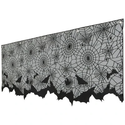 Transform your space into a bewitching haven of Halloween enchantment with this spider web and bats valance. This hauntingly creepy curtain seamlessly blends spooky elegance with an intricate display of arachnid artistry and winged creatures, creating an ambiance that is both enchanting and chilling. Perfect for window, door and mantles.Product Features:Spider web decorative valanceTrimmed with black batsEasy to hang from grommets Recommended for indoor or outdoor use Dimensions: 31.5 high x 63 wideMaterial(s): plastic