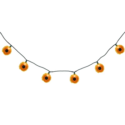 Brighten up your outdoor space with our sunflower patio light set. Inspired by the vibrant hues of summer blooms, these charming lights add a cheerful touch to any patio, deck, or garden. With their unique sunflower design and warm illumination, they create a cozy atmosphere for relaxing evenings or festive gatherings. Crafted with durability in mind, these lights are weather-resistant, ensuring they shine brightly season after season. Illuminate your outdoor oasis with the delightful charm of our sunflower patio light set.Product Features:Bulb color: clear bulbs / green wireBulb size: miniBulb type: incandescentNumber of bulbs on string: 10Spacing between each bulb: 8″Lighted length: 6’Total length: 8.5’6″ tail cord24″ lead cordAdditional Product Features:Steady burning bulbsIf one bulb burns out, the rest will stay litContains end-to-end connectors which allows you to connect multiple sets of lights together (not to exceed 210 watts)UL certified and approved for indoor or outdoor useComes with replacement bulbs and spare fuseWire gauge: 22120 volts, 60 hertz, .08 amps, 7.2 wattsDimensions:Light cover size: 2.5″ diameter