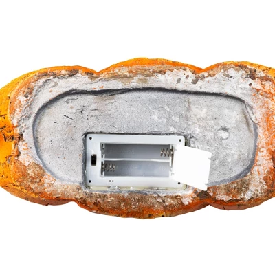 Create a bewitching Halloween atmosphere with this battery operated 13″ witch stirring a cauldron decoration. This charming pumpkin-shaped piece features a silhouette scene with a witch stirring her cauldron, a black cat, and flying bats. The entire scene is illuminated from within by warm, flickering, orange candlelight, giving the illusion of a glowing fire and bringing this haunting scene to life.Product Features:Witch stirring cauldron silhouette Halloween decorationScene is set inside a pumpkinNumber of bulbs: 1Bulb color: orangeFlickering bulb looks like real fireBulb type: LEDLED lights use 90% less energy Cool to the touch Requires 2 AAA batteries – not includedOn/off switch on the bottomBlack cat and bat accentsFor indoor use or outdoors under a covered areaDimensions: 13″H x 9.5″W x 4″DMaterial(s): MG0 (magnesium oxide)